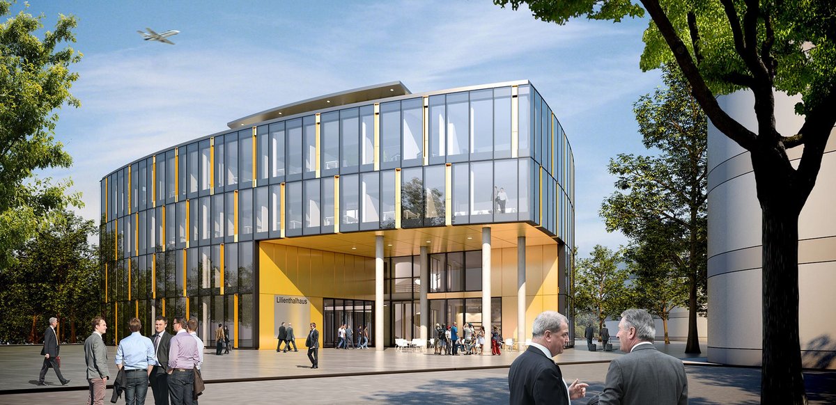 Sinnbildlich öffnet sich das Lilienthalhaus mit seinem zweigeschossigen Eingangsbereich und einer transparenten, energetisch optimierten Fassade aus raumhohen Verglasungen großzügig zum Lilienthalplatz. Der Einsatz von Smart Glass zur elektrischen Tönung der Fassade, die Zertifizierung der Deutschen Gesellschaft für nachhaltiges Bauen in Gold sowie der Einbau eines ETFE-Folienkissendachs über dem Atrium runden das moderne Gebäude mit nachhaltigen und technologischen Highlights ab und spiegeln die Innovativität des Standorts Forschungsflughafen wider.
